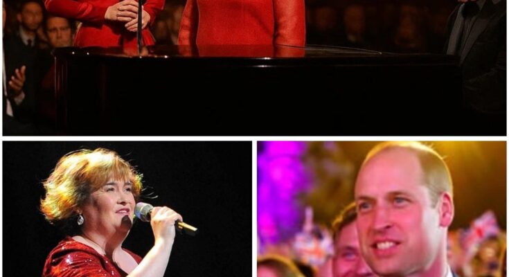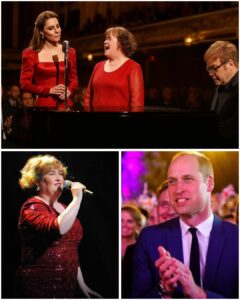 At a Private Royal Charity Banquet Within Windsor Castle, Kate Middleton Made a Rare and Incredibly Poignant Appearance by Walking Onto a Candlelit Stage Next to Susan Boyle. The Occasion, Which Was Intended to Celebrate Prince William’s 43rd Birthday, Was Made Unforgettable When Kate Seized the Stage and Quietly Joined Boyle in Song, With Elton John Providing a Gentle, Almost Religious Piano Accompaniment.