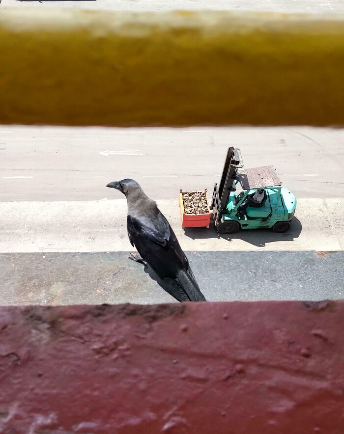 Bird Blocking A Forklift