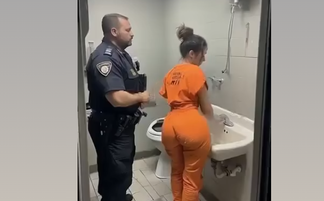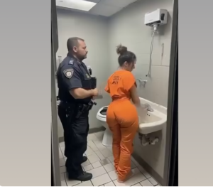 The footage, timestamped just minutes prior to the escort, captured the officer in a dimly lit holding room. The space was minimalistic: bare walls, a single table, and two metal chairs.